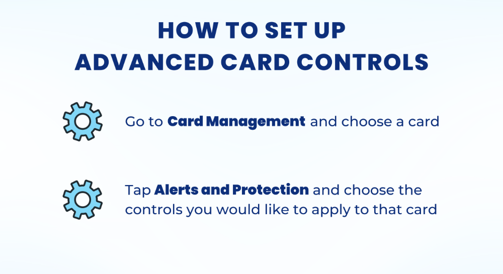 When it comes to security, our Online & Mobile Banking platform has you covered. That's because this powerful application has Advanced Card Controls that put you in charge of who uses your debit card — and how they use it.